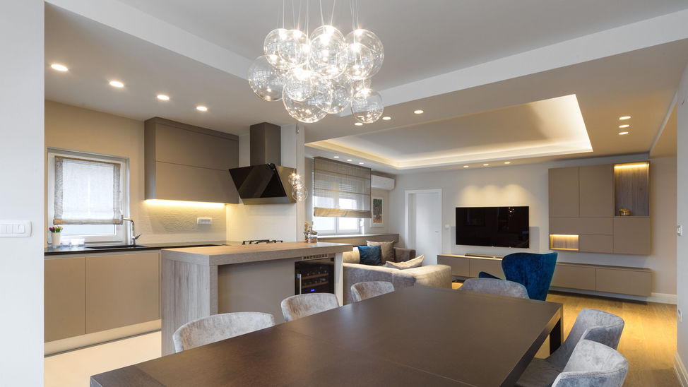 In the partially lowered ceiling, indirect lighting was installed, with the arrangement and selection of models of luminaires giving us a well-lit space.